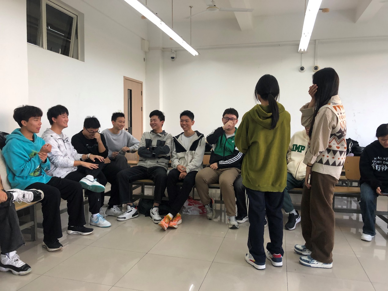 11月23日中午,23级环境工程1班在西操场举办了一场别开生面的户外班会。班主任石峰老师、辅导员张晓普老师参加了此次班会。石老师为了考验同学们彼此间的熟悉程度,组织大家开展了一些小型团建活动,例如,经典的击鼓传花,被抽中的两位同学要向全班互相介绍对方。有自带“社牛”属性的同学主动站出来做介绍,更有同学现场展示才艺。所有人围成圈坐在草地上,从开始略有拘束,到后面聊得不亦乐乎,整场班会氛围十分轻松活跃。班会结束后仍有同学拉着石老师继续交流。本次班会拉进了同学们之间的距离,增强了大一新生班的凝聚力,也增进了班主任和同学们之间的了解。这是一个好的开始!有很多同学踊跃提出了更多活动建议,大家已开始期待着下一次班级集体活动。