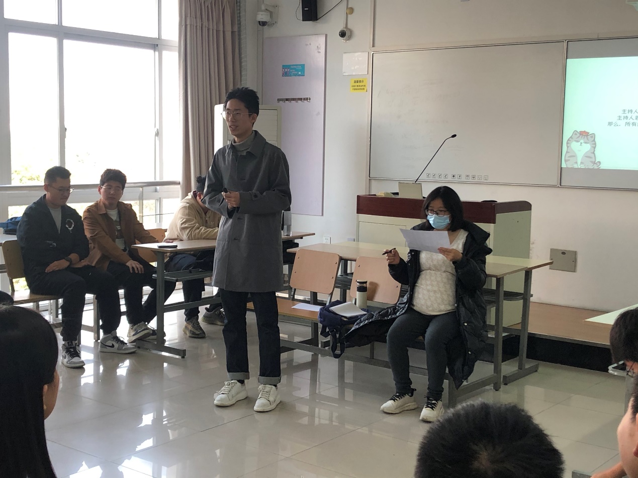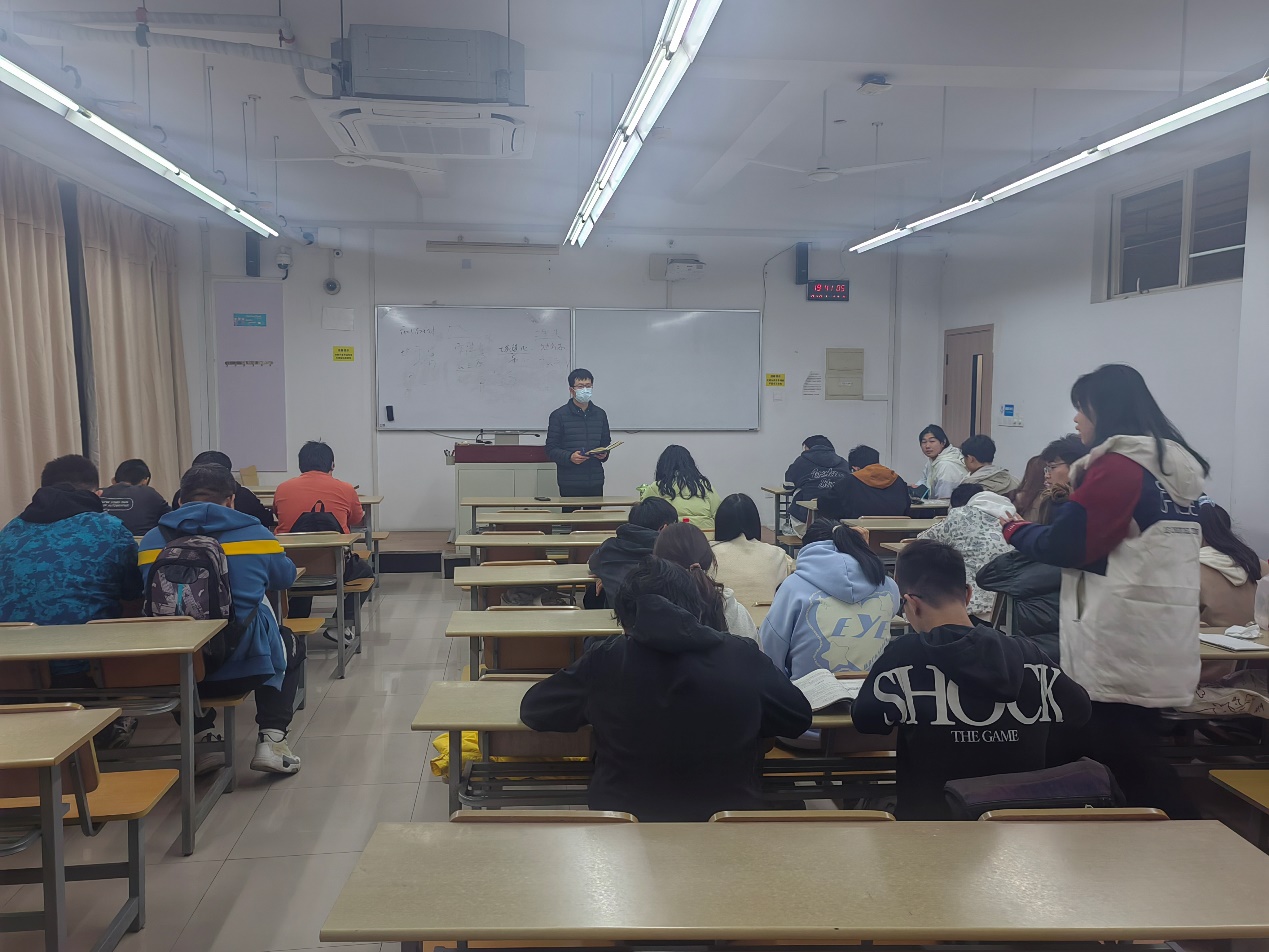 11月30日晚,21级集体班会在教学楼D415教室召开,系主任李旋坤老师、班主任郝宗娣老师、辅导员张晓普老师共同参加。班会主要围绕近期大三的学风和学业问题展开。步入大三,既有学业上的压力,也面临着升学、就业的选择,系主任李老师出席班会足见全系教师对21级同学思想、学习、生活情况的高度重视。三位老师对同学们在学习上遇到的困难表示关心,设身处地的用自身求学经历和解决办法给同学们举例示范,希望同学们发挥主观能动性,克服畏难心理,找到适合自己的学习方法并积极付诸行动。李老师带着同学们再次阅读了培养计划,希望大家对照毕业要求核对自身完成情况,并为后续选修课程做好计划。郝老师、张老师鼓励同学们多与任课老师、全程导师沟通,积极参加公司、公司组织的活动,认真完成老师们布置的任务。同学们认真聆听了三位老师的教导,将振奋精神,争取在本学期取得进步。