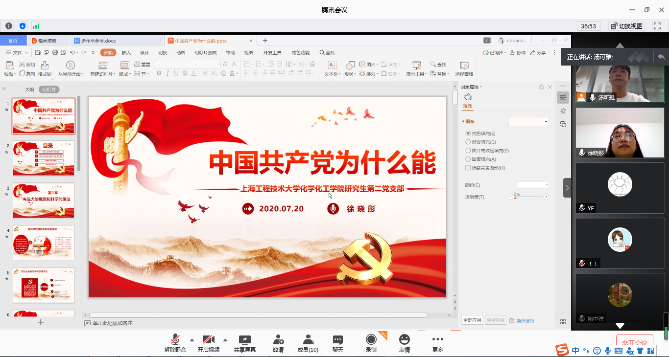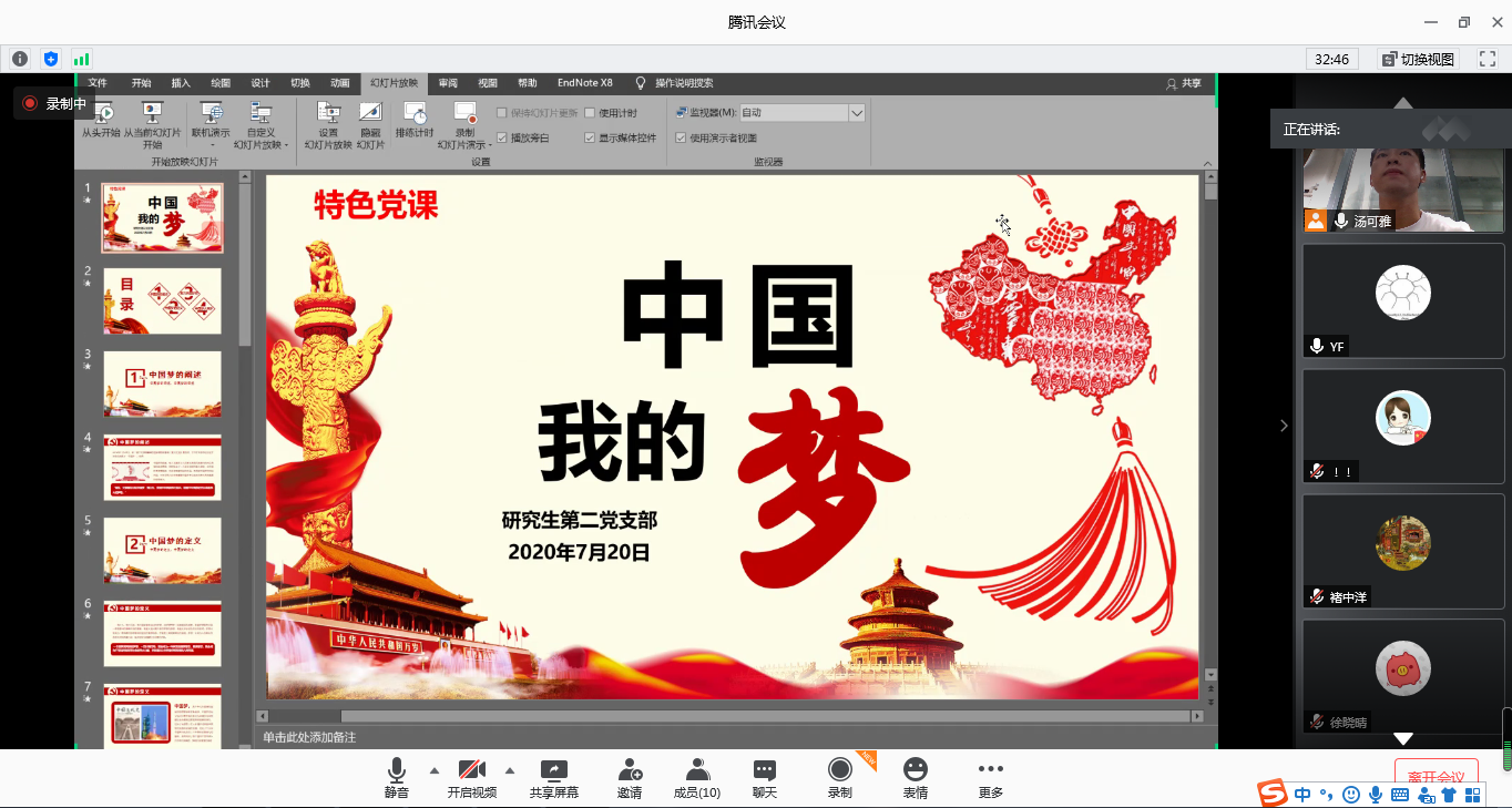 为深入贯彻落实“四史”学习教育,7月20日下午,44118太阳成城集团研究生第二党支部在腾讯会议平台召开了“四史”学习专题党课,支部全体党员参加学习。