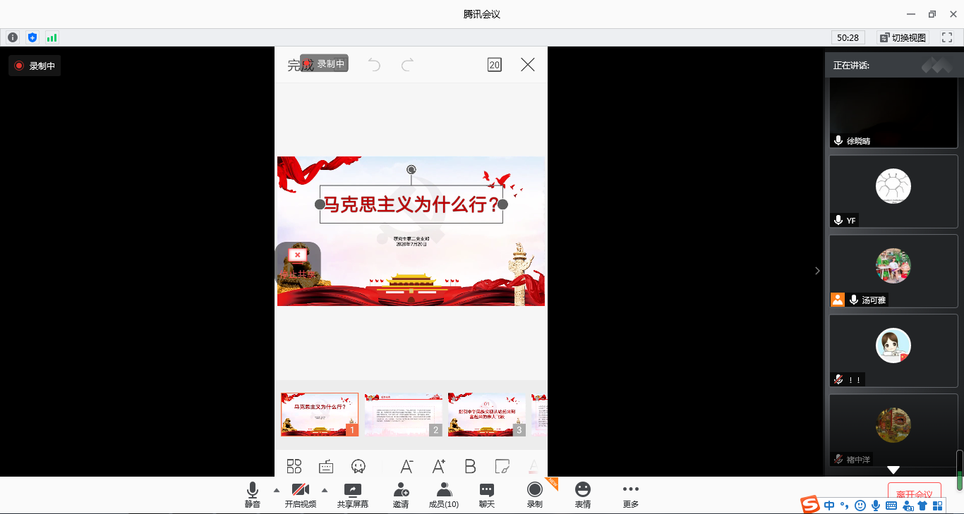徐晓彤结合本次党课主题,从四个方面介绍了中国共产党为什么“能”,是因为我们有远大的理想和科学的理论,有选贤任能的机制和严明的纪律规矩,有自我革命的精神以及强大的领导力。